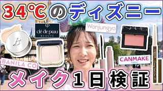【9時間検証】人気コスメ縛りメイクで34℃ディズニー検証!